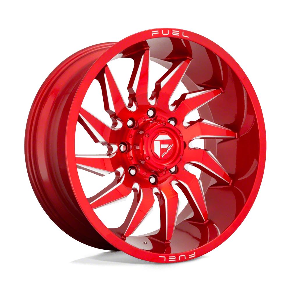 Fuel Wheels Saber Candy Red Milled 8-Lug Wheel; 20x9; 20mm Offset The Fuel Wheels Saber Candy Red Milled 8-Lug Wheel combines a sleek, sophisticated design with premium construction that enhances the visual appeal and complements a wide range of vehicle styles. This wheel is perfect for those seeking to make a bold statement while maintaining elegance and robustness.