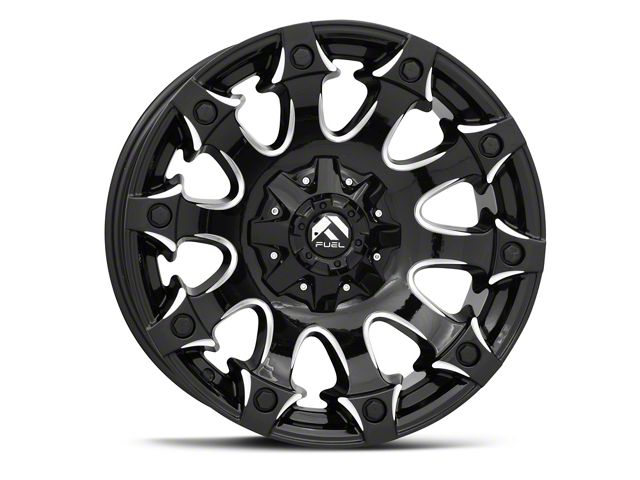 Fuel Wheels Battle Axe Gloss Black Milled 6-Lug Wheel; 20x12; -44mm Offset: Redefine your vehicle's style with the Fuel Wheels Battle Axe Gloss Black Milled 6-Lug Wheel. This wheel's elegant design and striking finish embody a blend of sophistication and boldness, perfectly complementing a wide array of vehicle aesthetics. Crafted from high-quality materials, it's a testament to durability and style.