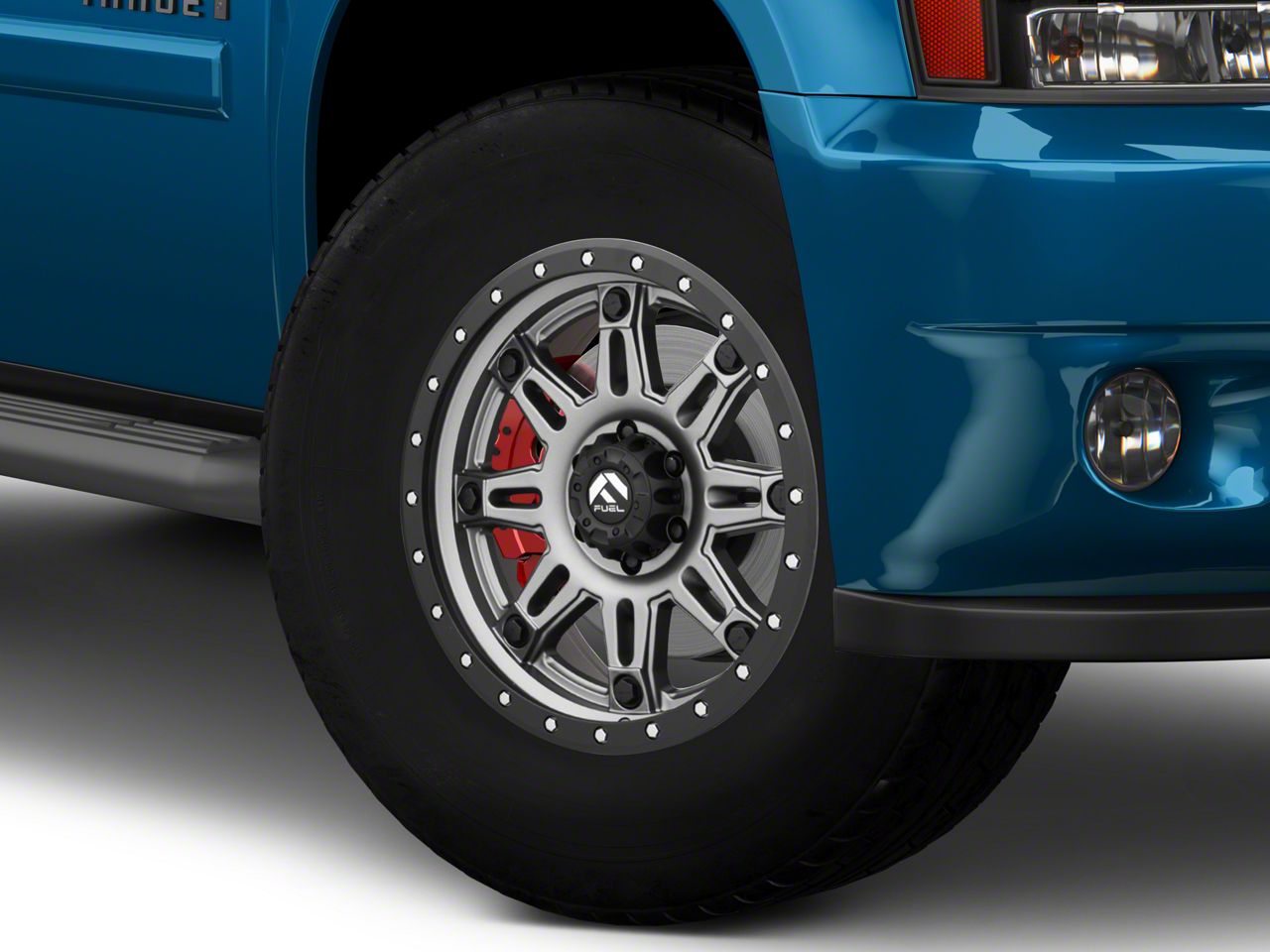 Application. This Fuel Wheels Hostage III Anthracite with Black Ring 6-Lug Wheel; 18x9, with a backspace of 5.788 Inch, 147.1mm and a bolt pattern of 6 x 139.7mm (6 x 5.5-Inch), is designed to enhance alignment and driving stability. It's specially designed to fit the 2007-2014 Tahoe models, sold individually.