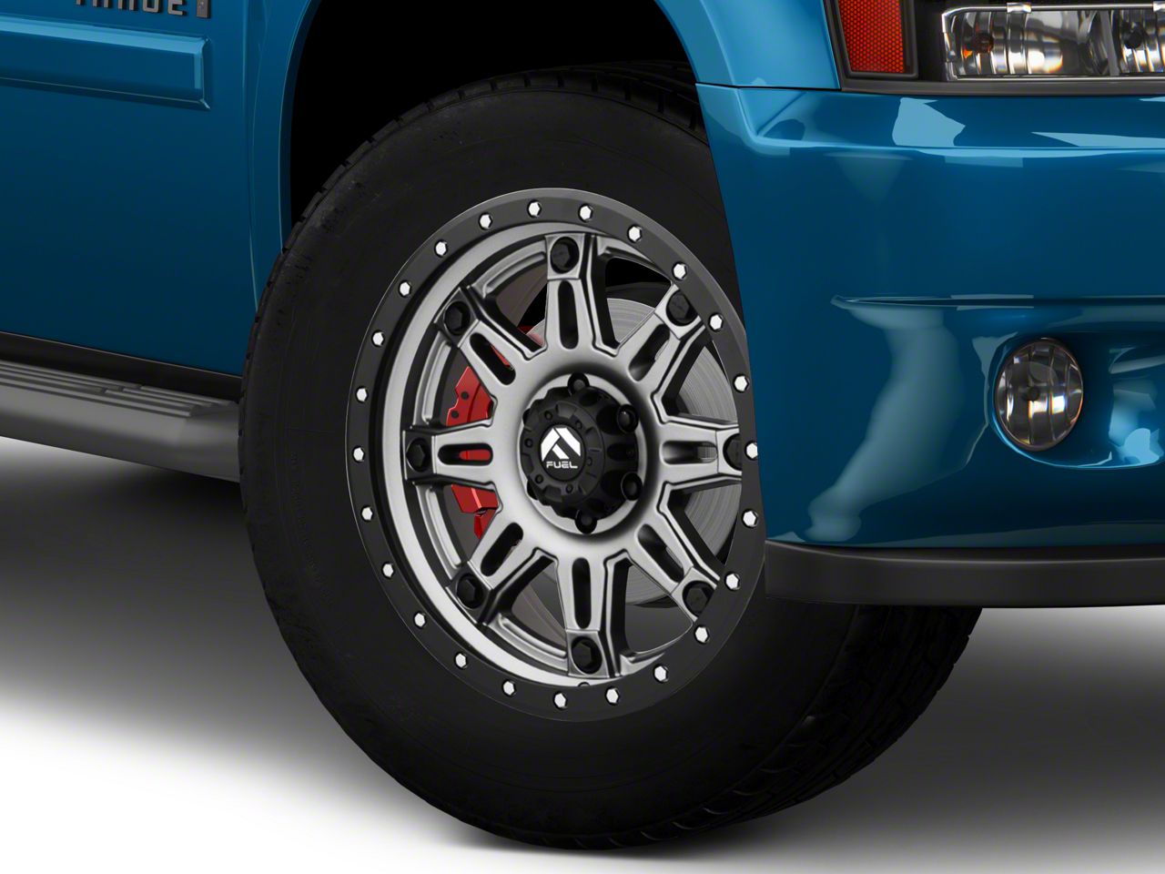 Application. This Fuel Wheels Hostage III Anthracite with Black Ring 6-Lug Wheel; 20x9; 1mm Offset, with a backspacing of 5.04 Inch, 128.1mm and a bolt pattern of 6 x 139.7mm (6 x 5.5-Inch), is designed to fit 2007-2014 Tahoe models. Sold individually, it's an ideal choice for those seeking to elevate their vehicle's appearance and performance.