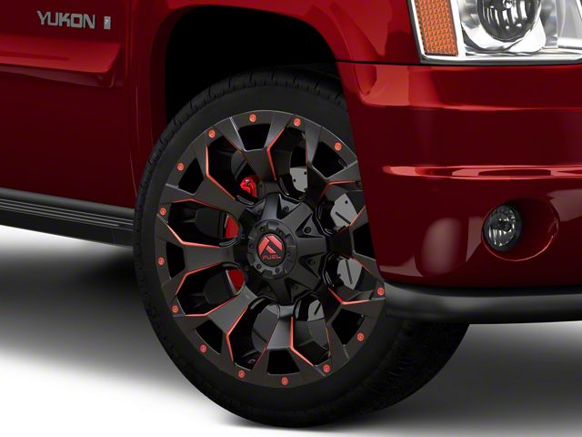 Application. This Fuel Wheels Assault Matte Black Red Milled 6-Lug Wheel; 22x10; -18mm Offset, with a backspace of 4.791 Inch, 121.7mm; and bolt pattern of 6 x 139.7mm (6 x 5.5-Inch), is designed to fit the 2007-2014 Yukon . The precise specifications of the wheel ensure proper alignment and driving stability, perfectly complementing the vehicle's model. Sold individually.