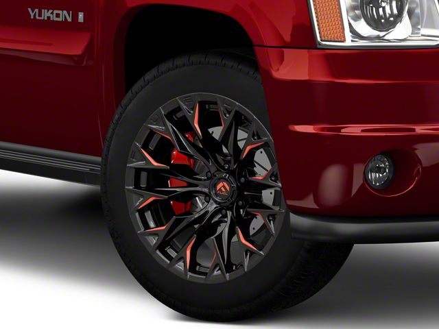 Application. This Fuel Wheels Flame Gloss Black Milled with Red Accents 6-Lug Wheel; 20x10; -18mm Offset with a backspace of 4.792 Inch, 121.8mm; and bolt pattern of 6 x 139.7mm (6 x 5.5-Inch), contributes to alignment, driving stability, and ensures a perfect fit with the vehicle model. Designed to fit the 2007-2014 Yukon. Sold individually.