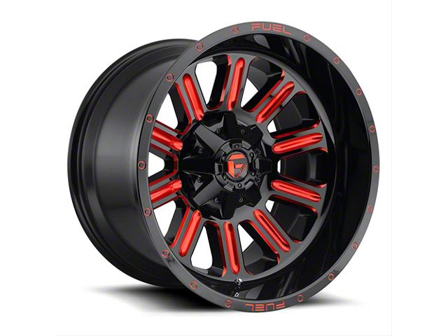 Fuel Wheels Hardline Gloss Black with Red Tint Clear 6-Lug Wheel; 20x12; -44mm Offset exudes a captivating aesthetic appeal that seamlessly complements various vehicle styles. The craftsmanship of Fuel Wheels ensures a robust and premium feel, making it a standout choice for discerning drivers.