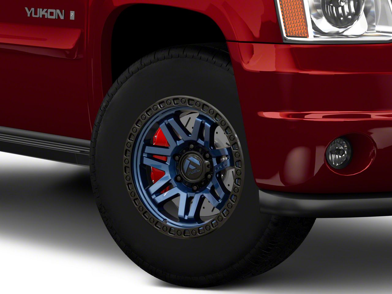 Application. This Fuel Wheels Syndicate Dark Blue with Black Ring 6-Lug Wheel; 17x9; -12mm Offset with a backspace of 4.528 Inch, 115mm and bolt pattern of 6 x 139.7mm (6 x 5.5-Inch) ensures optimal alignment, unparalleled driving stability, and an impeccable fit with your vehicle. It is designed to fit the 2007-2014 Yukon models. Sold individually.