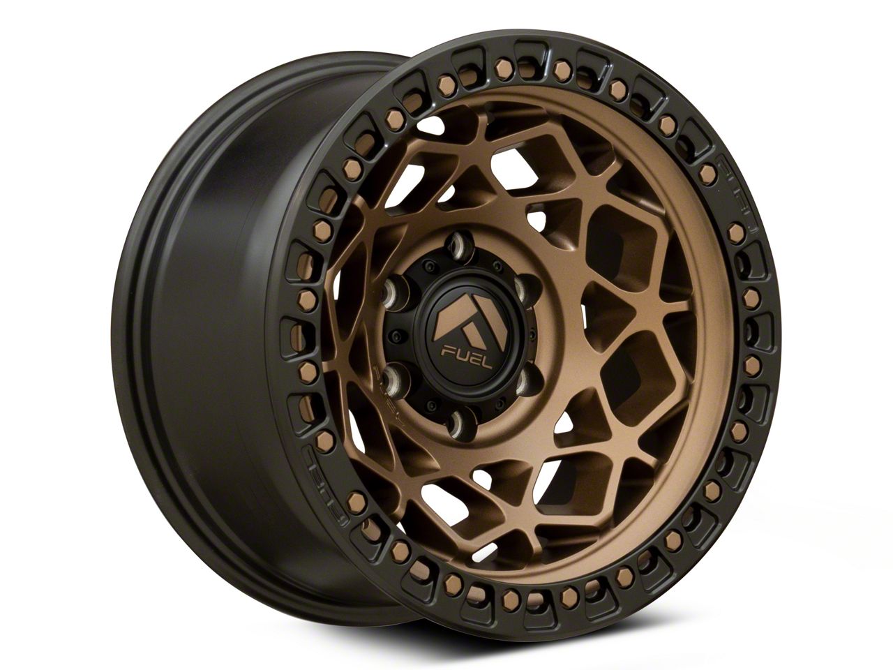 The 17x9 Fuel Wheels Unit Bronze with Matte Black Ring 6-Lug Wheel underwent a thorough finishing process with certain coatings providing added protection against environmental elements and daily wear. Aesthetically, this finish can significantly enhance the wheel's appearance, making it a standout feature.