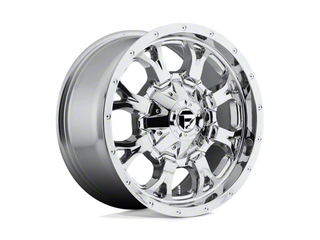 The 20x9 Fuel Wheels Krank Chrome 8-Lug Wheel; 20x9; 1mm Offset is completed in a high-quality, sparkling chrome finish, which will be sure to turn heads. The wheel underwent a 3-stage process, including nickel, copper and of course, chrome.