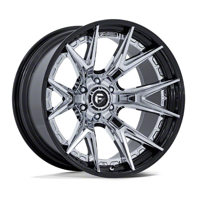 Fuel Wheels Catalyst Chrome with Gloss Black Lip 6-Lug Wheel; 20x9; 20mm Offset has a unique aesthetic appeal, combining a rugged finish with a sleek design. This striking design enhances the visual impact of any vehicle, making it a standout on the road. Perfect for those seeking a balance of toughness and style.
