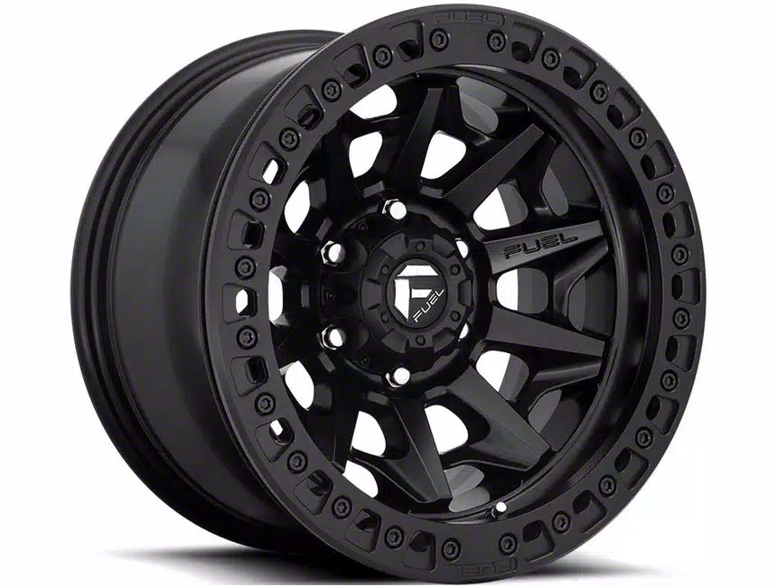 The 17x9 Fuel Wheels Covert Beadlock Matte Black 6-Lug Wheel is completed in a high-quality matte black finish, which looks great. Thanks to a durable clear coat, the finish also protects against the rigors of driving.