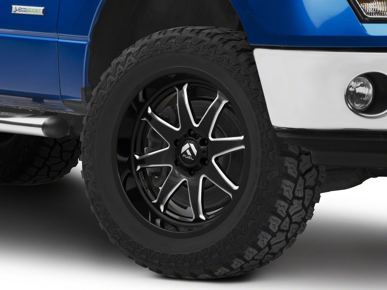 Application. This Fuel Wheels Hammer Gloss Black Milled 6-Lug Wheel; 20x9; 1mm Offset, with a backspacing of 5.039 Inch, 128mm; and bolt pattern of 6 x 135mm (6 x 5.31-Inch), provides enhanced alignment and stability. Designed to fit the 2009-2014 F-150 models, it offers precise fitment and is sold individually.
