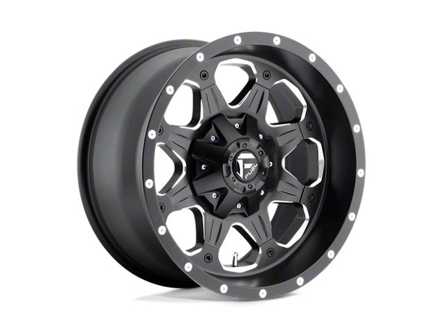 Fuel Wheels Boost Matte Black Milled 8-Lug Wheel; 18x9; 1mm Offset The Fuel Wheels Boost Matte Black Milled 8-Lug Wheel combines a sleek, sophisticated design with premium construction that enhances the visual appeal and complements a wide range of vehicle styles. This wheel is perfect for those seeking to make a bold statement while maintaining elegance and robustness.