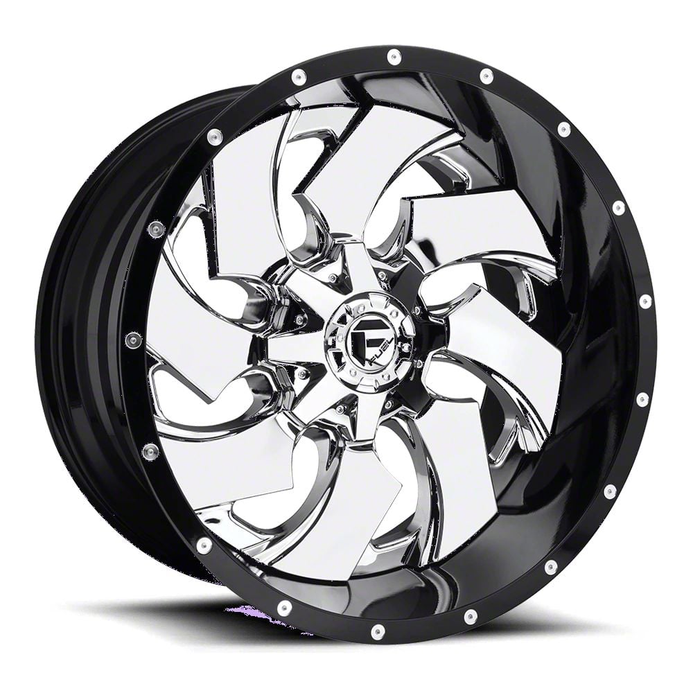 Fuel Wheels Cleaver Chrome with Gloss Black Lip 8-Lug Wheel; 20x9; 20mm Offset The Fuel Wheels Cleaver Chrome with Gloss Black Lip 8-Lug Wheel combines a sleek, sophisticated design with premium construction that enhances the visual appeal and complements a wide range of vehicle styles. This wheel is perfect for those seeking to make a bold statement while maintaining elegance and robustness.