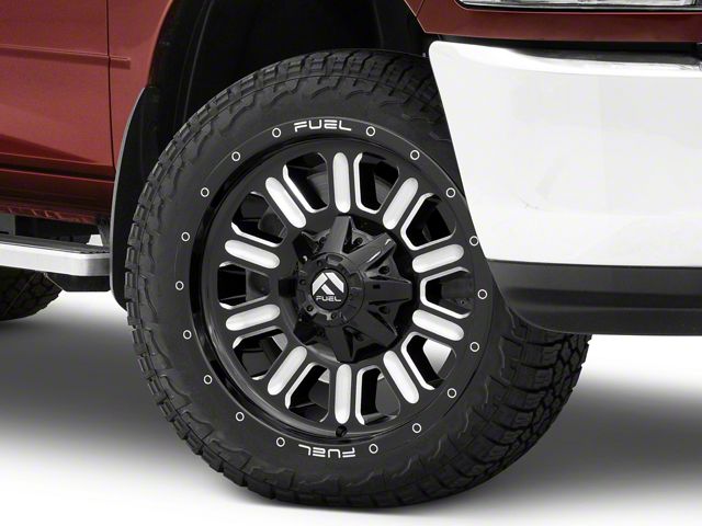 Application. This Fuel Wheels Hammer Gloss Black Milled 8-Lug Wheel; 22x10; -18mm Offset, with a backspace of 4.791 Inch, 121.7mm; and bolt pattern of 8 x 165.1mm (8 x 6.5-Inch), is designed to fit the 2010-2018 RAM 2500 . The precise specifications of the wheel ensure proper alignment and driving stability, perfectly complementing the vehicle's model. Sold individually.