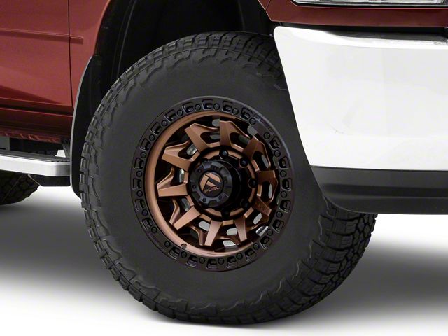 Fuel Wheels Covert Matte Bronze with Black Bead Ring 8-Lug Wheel; 18x9; 1mm Offset The Fuel Wheels Covert Matte Bronze with Black Bead Ring 8-Lug Wheel combines a sleek, sophisticated design with premium construction that enhances the visual appeal and complements a wide range of vehicle styles. This wheel is perfect for those seeking to make a bold statement while maintaining elegance and robustness.