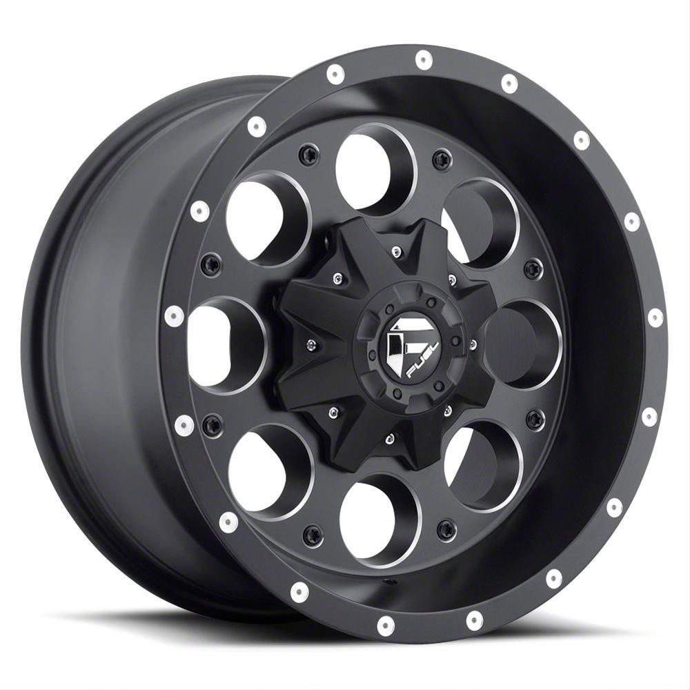 This 20x9 Fuel Wheels Revolver Matte Black Milled 8-Lug Wheel is completed in a high-quality matte black finish with steel milled accents to create an impressive appearance. There's a durable clear coat that protects against driving hazards.