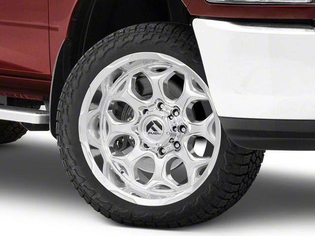 Fuel Wheels Scepter Polished Milled 8-Lug Wheel; 22x12; -44mm Offset exudes sophistication with its finish, offering a sleek and modern appeal to any vehicle it adorns. The design is meticulously crafted to enhance the aesthetic of your vehicle, giving it a distinctive and upscale look. Perfect for those seeking to elevate their vehicle's style, this wheel blends seamlessly with both contemporary and classic vehicle designs, making it a versatile choice for a wide range of vehicles. Its robust construction ensures durability, making it a reliable choice for drivers who value both style and quality.