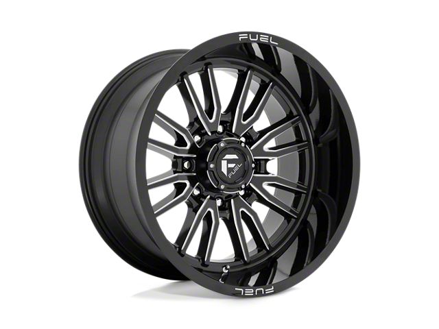 Fuel Wheels Clash Gloss Black Milled 8-Lug Wheel; 22x12; -44mm Offset The Fuel Wheels Clash Gloss Black Milled 8-Lug Wheel combines a sleek, sophisticated design with premium construction that enhances the visual appeal and complements a wide range of vehicle styles. This wheel is perfect for those seeking to make a bold statement while maintaining elegance and robustness.
