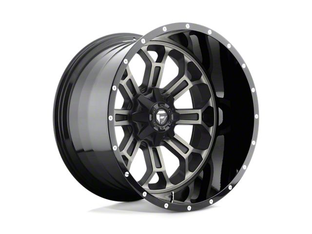 Fuel Wheels Crush Gloss Machined Double Dark Tint 8-Lug Wheel; 22x12; -44mm Offset The Fuel Wheels Crush Gloss Machined Double Dark Tint 8-Lug Wheel combines a sleek, sophisticated design with premium construction that enhances the visual appeal and complements a wide range of vehicle styles. This wheel is perfect for those seeking to make a bold statement while maintaining elegance and robustness.