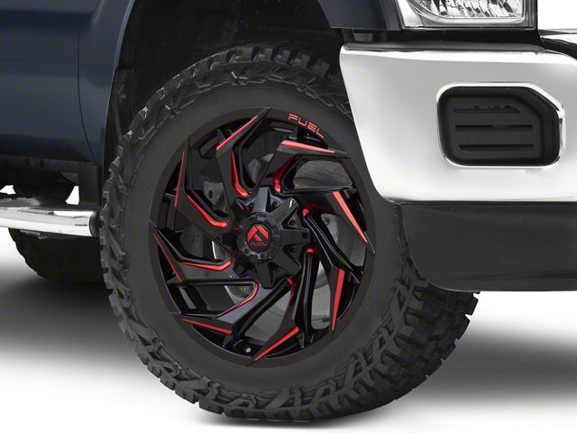 Fuel Wheels Reaction Gloss Black Milled with Red Tint 8-Lug Wheel; 20x9; 20mm Offset The Fuel Wheels Reaction Gloss Black Milled with Red Tint 8-Lug Wheel combines a sleek, sophisticated design with premium construction that enhances the visual appeal and complements a wide range of vehicle styles. This wheel is perfect for those seeking to make a bold statement while maintaining elegance and robustness.