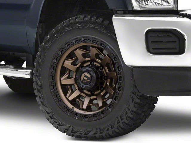 Application. This Fuel Wheels Covert Matte Bronze with Black Bead Ring 8-Lug Wheel; 20x9; 1mm Offset, with a backspace of 5.039 Inch, 128mm and bolt pattern of 8 x 170mm (8 x 6.69-Inch), is designed to provide not only a striking visual appeal but also to contribute significantly to the alignment and driving stability of the vehicle. Its specifications ensure a precise fit with the vehicle model, enhancing the overall driving experience. Built to fit the 2011-2016 F-350 Super Duty SRW, this wheel is sold individually.