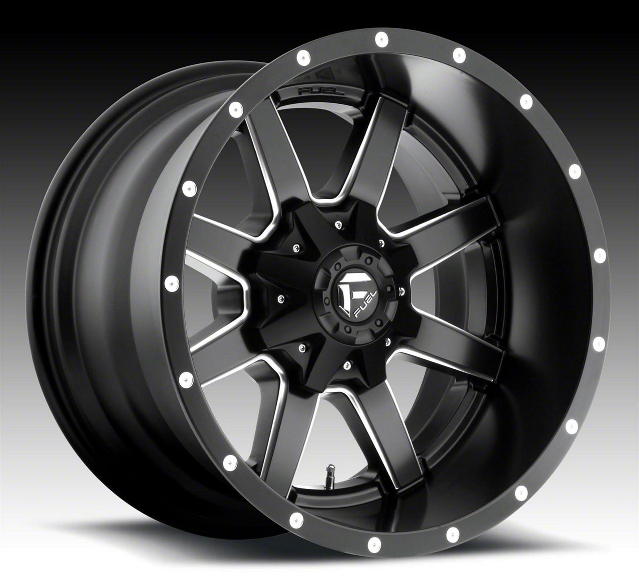 The 22x12 Fuel Wheels Maverick Matte Black Milled 8-Lug Wheel; 22x12; -44mm Offset is completed in a high quality, matte black finish. The milled steel accents are where it really shines through. The accents make the split section of the spokes pop along the faux beadlock.