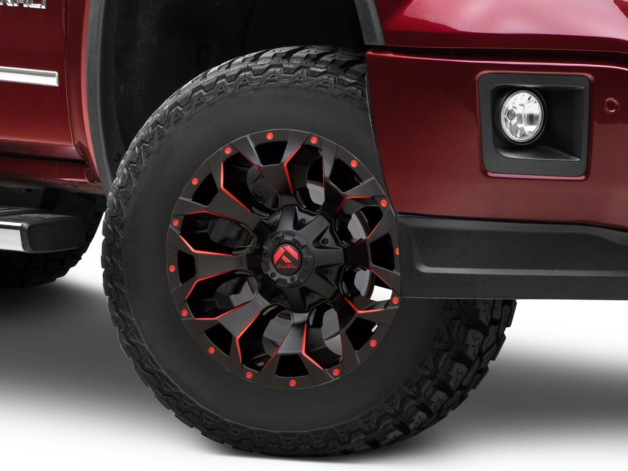 Application. This Fuel Wheels Assault Matte Black Red Milled 6-Lug Wheel; 17x9; -12mm Offset with a backspace of 4.528 Inch, 115.1mm; and bolt pattern of 6 x 139.7mm (6 x 5.5-Inch) contributes to impeccable alignment and driving stability. Designed to fit 2014-2018 Sierra 1500 models, sold individually.