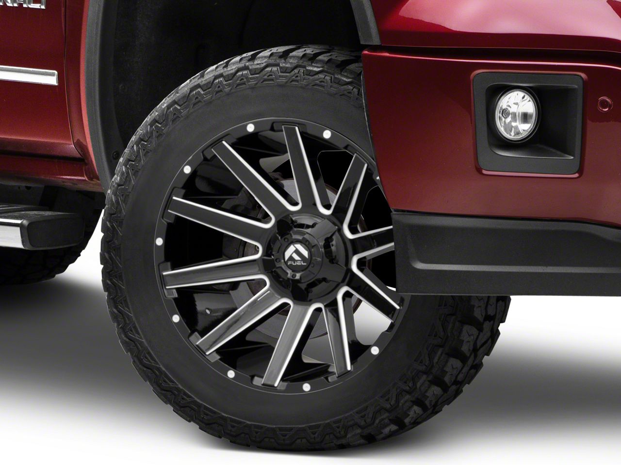 Application. This Fuel Wheels Contra Gloss Black Milled 6-Lug Wheel; 20x9; 20mm Offset, with a backspacing of 5.788 Inch, 147.1mm and a bolt pattern of 6 x 139.7mm (6 x 5.5-Inch), is designed to fit 2014-2018 Sierra 1500 models. Sold individually, it's an ideal choice for those seeking to elevate their vehicle's appearance and performance.