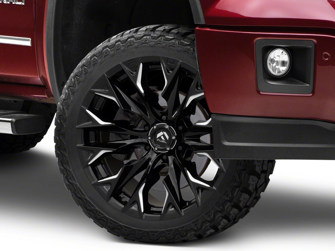 Application. This Fuel Wheels Flame Gloss Black Milled 6-Lug Wheel; 22x10; -18mm Offset, with a backspacing of 4.791 Inch, 121.7mm and a bolt pattern of 6 x 139.7mm (6 x 5.5-Inch), offers superior alignment and stability. It's precisely engineered to enhance your vehicle's performance. Designed to fit 14-18 Sierra 1500 models, it ensures a perfect fit and impeccable style. Sold individually.