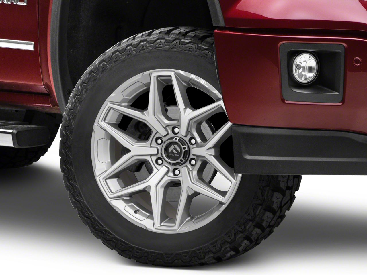Application. This Fuel Wheels Flux Platinum 6-Lug Wheel; 20x9; 20mm Offset with a backspace of 5.787 Inch, 147mm; and bolt pattern of 6 x 139.7mm (6 x 5.5-Inch), contributes to alignment, driving stability, and ensures a perfect fit with the vehicle model. Designed to fit the 2014-2018 Sierra 1500. Sold individually.