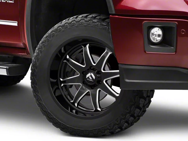 Application. This Fuel Wheels Hammer Gloss Black Milled 6-Lug Wheel; 20x10; -18mm Offset, with a backspace of 4.791 Inch, 121.7mm and bolt pattern of 6 x 139.7mm (6 x 5.5-Inch), is designed to enhance alignment and driving stability, ensuring a perfect fit with the vehicle model. Specifically designed to fit 2014-2018 Sierra 1500 models, this wheel's specifications contribute to a seamless alignment and stable driving experience by ensuring the wheel fits perfectly within the vehicle's wheel well, reducing the risk of rubbing issues and optimizing handling characteristics. Sold individually.