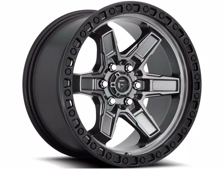 Application. This Fuel Wheels Kicker Matte Gunmetal with Black Bead Ring 6-Lug Wheel; 20x10; -18mm Offset, with a backspace of 4.791 Inch, 121.7mm and bolt pattern of 6 x 139.7mm (6 x 5.5-Inch), is designed to enhance alignment and driving stability, ensuring a perfect fit with the vehicle model. Specifically designed to fit 2014-2018 Sierra 1500 models, this wheel's specifications contribute to a seamless alignment and stable driving experience by ensuring the wheel fits perfectly within the vehicle's wheel well, reducing the risk of rubbing issues and optimizing handling characteristics. Sold individually.