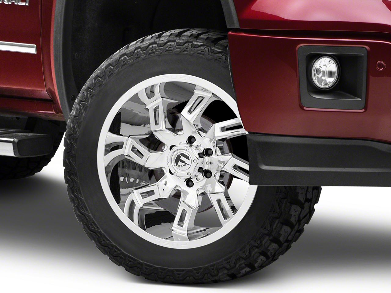 Application. This Fuel Wheels Lockdown Chrome 6-Lug Wheel; 20x10; -18mm Offset, with a backspace of 4.791 Inch, 121.7mm and bolt pattern of 6 x 139.7mm (6 x 5.5-Inch), is designed to enhance alignment and driving stability, ensuring a perfect fit with the vehicle model. Specifically designed to fit 2014-2018 Sierra 1500 models, this wheel's specifications contribute to a seamless alignment and stable driving experience by ensuring the wheel fits perfectly within the vehicle's wheel well, reducing the risk of rubbing issues and optimizing handling characteristics. Sold individually.