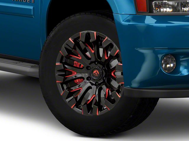 Fuel Wheels Quake Gloss Black Milled with Red Accents 6-Lug Wheel; 20x10; -18mm Offset: Immerse your vehicle in style and elegance with this wheel's captivating matte black finish. The unique 10-hole design of this Mammoth wheel sets your vehicle apart, making a statement on the road. Whether cruising the city streets or heading out for a weekend escape, this wheel complements a wide range of vehicle styles.