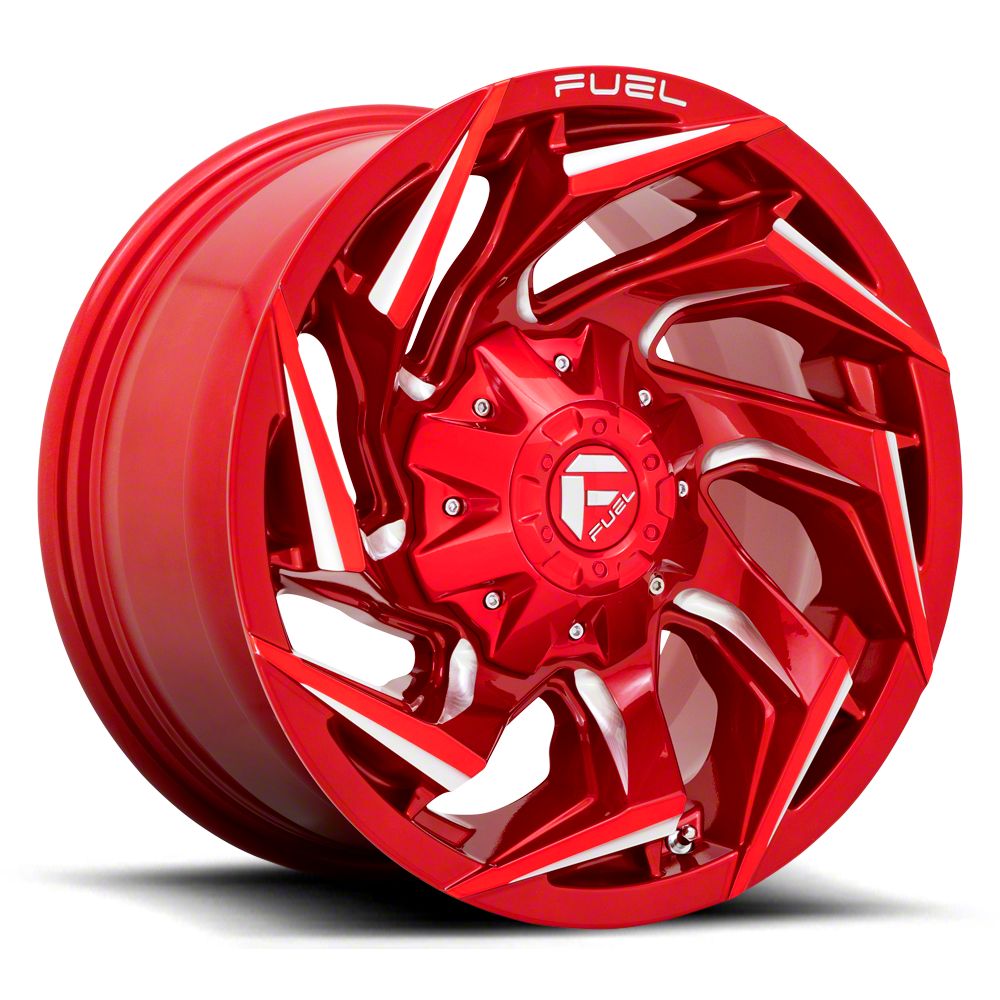 The 24x12 Fuel Wheels Reaction Candy Red Milled 6-Lug Wheel; ; -44mm Offset is completed in a stunning candy red hue, that features milled accents for an impressive head-turning presentation.