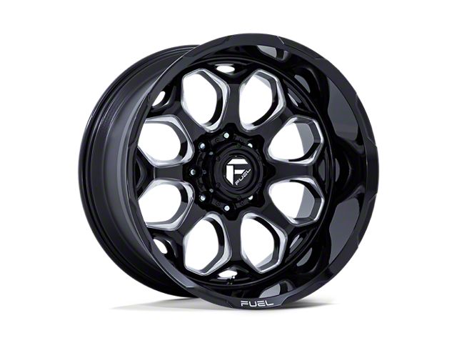 Fuel Wheels Scepter Gloss Black Milled 6-Lug Wheel; 20x10; -18mm Offset exudes sophistication with its finish, offering a sleek and modern appeal to any vehicle it adorns. The design is meticulously crafted to enhance the aesthetic of your vehicle, giving it a distinctive and upscale look. Perfect for those seeking to elevate their vehicle's style, this wheel blends seamlessly with both contemporary and classic vehicle designs, making it a versatile choice for a wide range of vehicles. Its robust construction ensures durability, making it a reliable choice for drivers who value both style and quality.