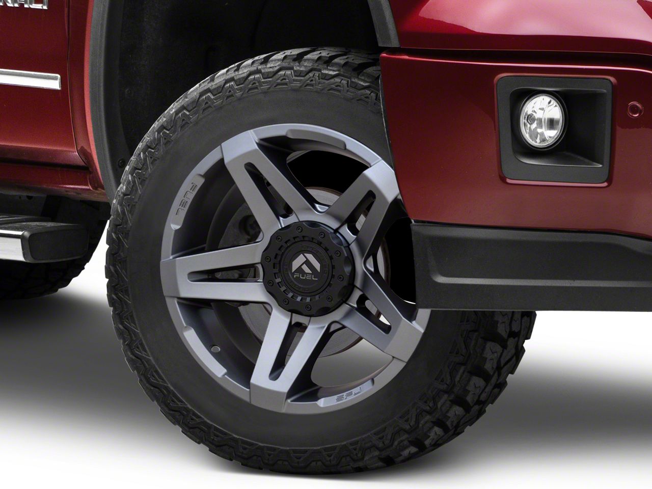 Application. This Fuel Wheels SFJ Matte Gunmetal 6-Lug Wheel; 20x12; -44mm Offset, with a backspace of 4.768 Inch, 121.1mm and bolt pattern of 6 x 139.7mm (6 x 5.5-Inch), is designed to provide not only a striking visual appeal but also to contribute significantly to the alignment and driving stability of the vehicle. Its specifications ensure a precise fit with the vehicle model, enhancing the overall driving experience. Built to fit the 2014-2018 Sierra 1500, this wheel is sold individually.