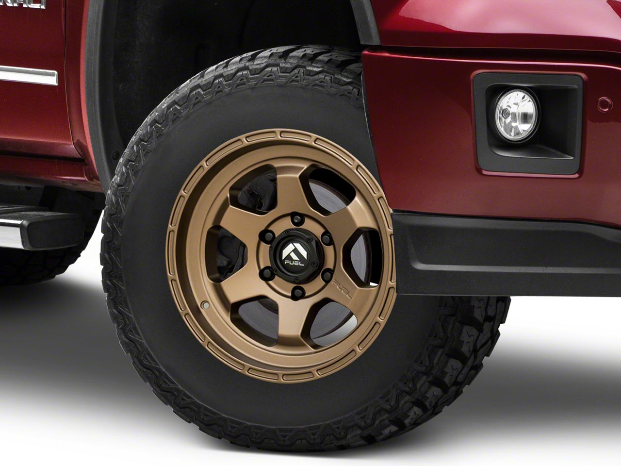 Application. This Fuel Wheels Shok Matte Bronze 6-Lug Wheel; 17x9; -12mm Offset with a backspace of 4.528 Inch, 115.1mm and bolt pattern of 6 x 139.7mm (6 x 5.5-Inch) ensures impeccable alignment and driving stability. It's designed to fit the 2014-2018 Sierra 1500 models, sold individually.Fuel Wheels D66617908445