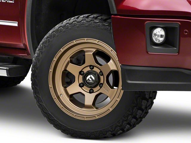 Application. This Fuel Wheels Shok Matte Bronze 6-Lug Wheel; 18x9; -12mm Offset with a backspace of 4.528 Inch, 115.1mm and bolt pattern of 6 x 139.7mm (6 x 5.5-Inch) ensures optimal alignment, unparalleled driving stability, and an impeccable fit with your vehicle. It is designed to fit the 2014-2018 Sierra 1500 models. Sold individually.