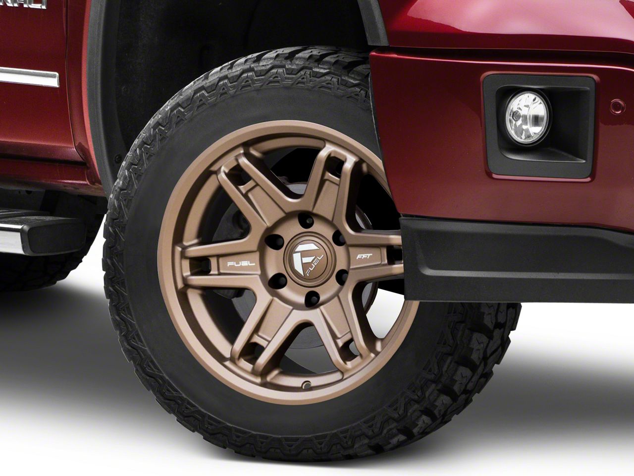 Application. The Fuel Wheels Slayer Matte Bronze 6-Lug Wheel; 20x9; 1mm Offset, with a backspace of 5.039 Inch, 128mm and a bolt pattern of 6 x 139.7mm (6 x 5.5-Inch), is designed to enhance alignment and stability for a smooth driving experience. Specifically tailored to fit 2014-2018 Sierra 1500 models, it ensures a perfect blend of style and functionality. Sold individually, this wheel is an ideal upgrade for your vehicle.