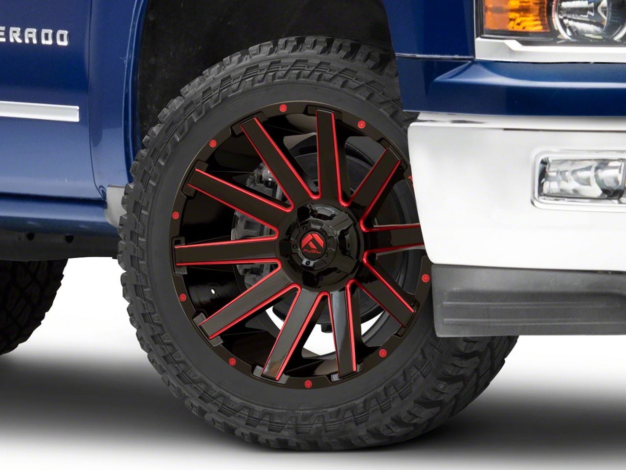 Application. This Fuel Wheels Contra Gloss Black with Red Tint 6-Lug Wheel; 22x10; -19mm Offset with a backspace of 4.752 Inch, 120.8mm; and bolt pattern of 6 x 139.7mm (6 x 5.5-Inch) contributes to impeccable alignment and driving stability. Designed to fit 2014-2018 Silverado 1500 models, sold individually.