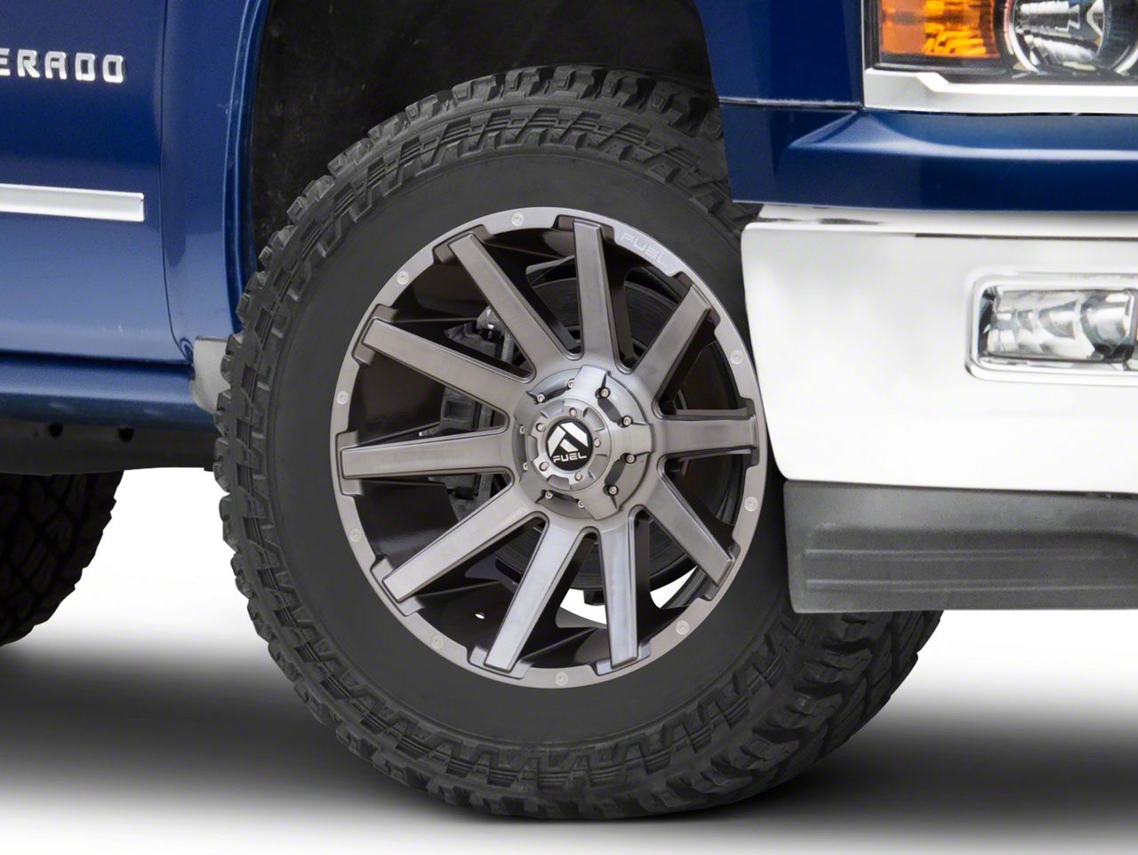 The 20x10 Fuel Wheels Contra Platinum Brushed Gunmetal with Tinted Clear 6-Lug Wheel is completed in a high-quality brushed gunmetal finish with contrasting accents for an aggressive appearance that will turn heads. This wheel features a durable clear coat that stands up to the hazards of everyday driving.