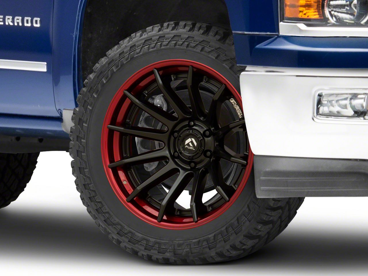 Application. This Fuel Wheels Fusion Forged Burn Matte Black with Candy Red Lip 6-Lug Wheel; 22x12; -44mm Offset, with a backspacing of 4.768 Inch, 121.1mm and a bolt pattern of 6 x 139.7mm (6 x 5.5-Inch), enhances your vehicle's alignment and driving stability. It is designed to fit 2014-2018 Silverado 1500 models, ensuring a perfect match for these specific vehicles. The wheel's specifications are tailored to provide optimal fit and performance, offering a seamless integration with your vehicle's design. Sold individually.