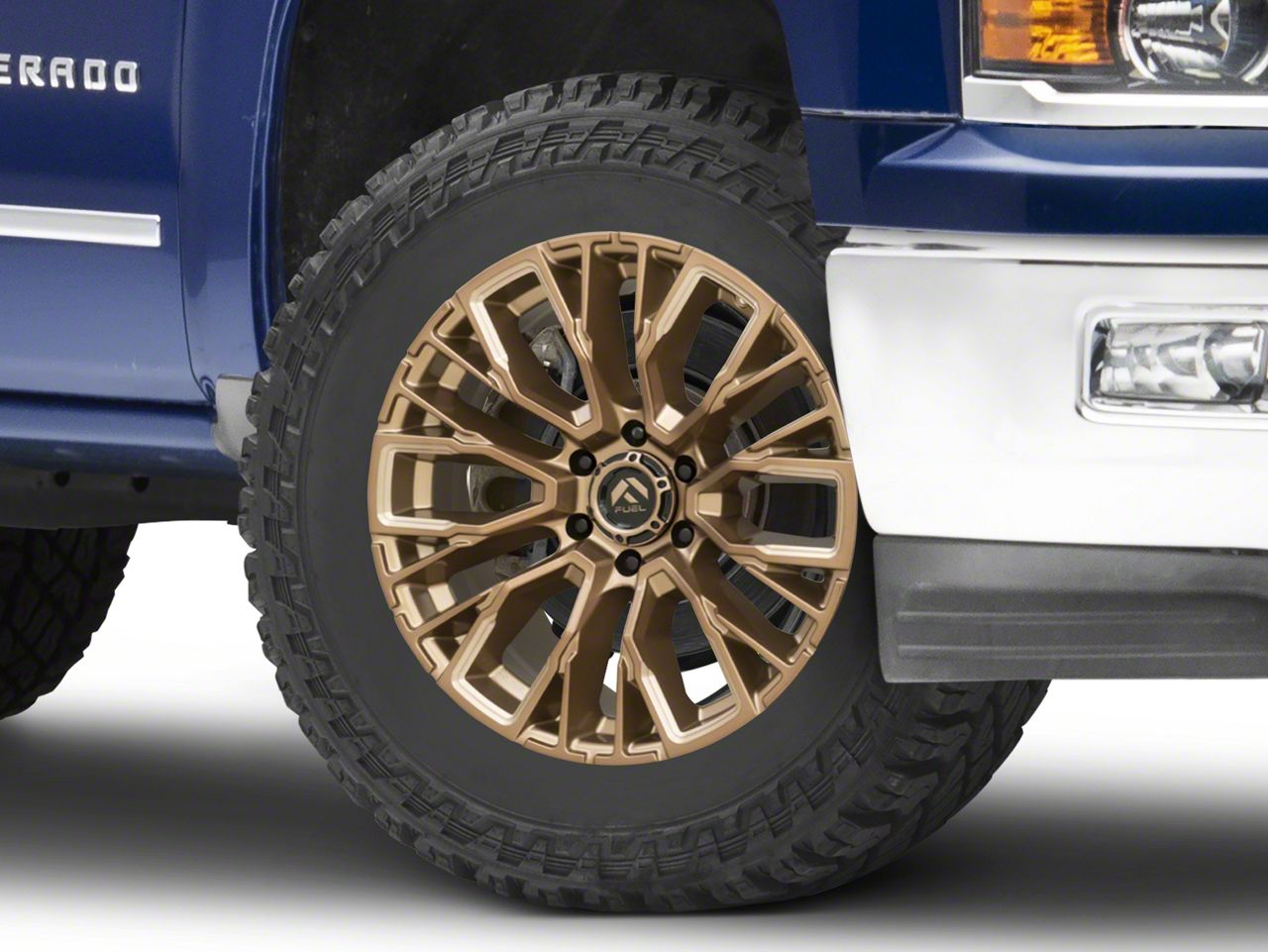 Application. This Fuel Wheels Rebar Platinum Bronze Milled 6-Lug Wheel; 20x9; 20mm Offset, with a backspace of 5.787 Inch, 147mm; and bolt pattern of 6 x 139.7mm (6 x 5.5-Inch), ensures precise alignment and unwavering stability. Designed to fit the 2014-2018 Silverado 1500 models, it stands out as a tailored enhancement. Sold individually.