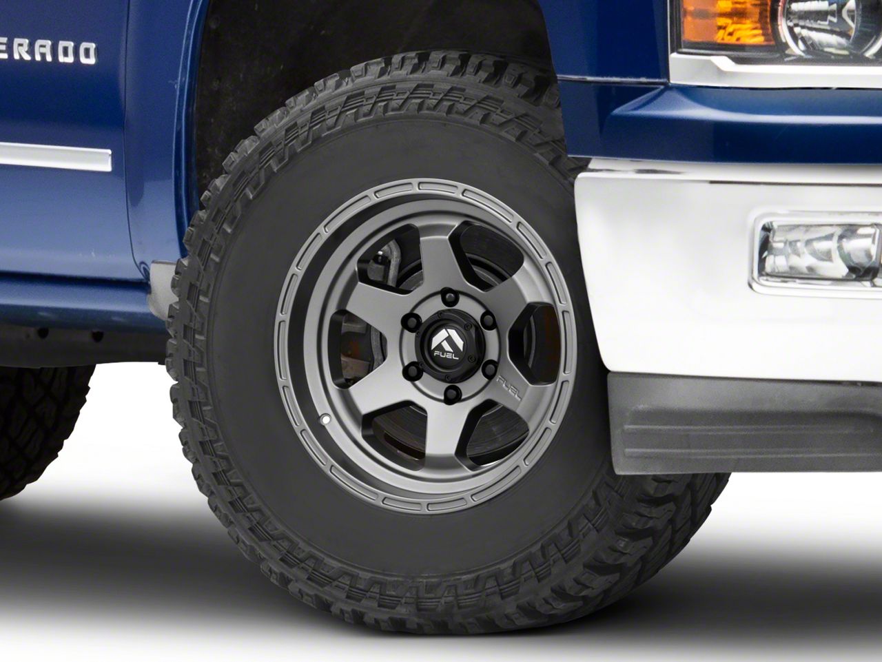 Application. This Fuel Wheels Shok Matte Gunmetal 6-Lug Wheel; 17x9; 1mm Offset, with a backspace of 5.04 Inch, 128.1mm and bolt pattern of 6 x 139.7mm (6 x 5.5-Inch), ensures optimal alignment and driving stability. It is designed to fit 2014-2018 Silverado 1500 models. Sold individually.