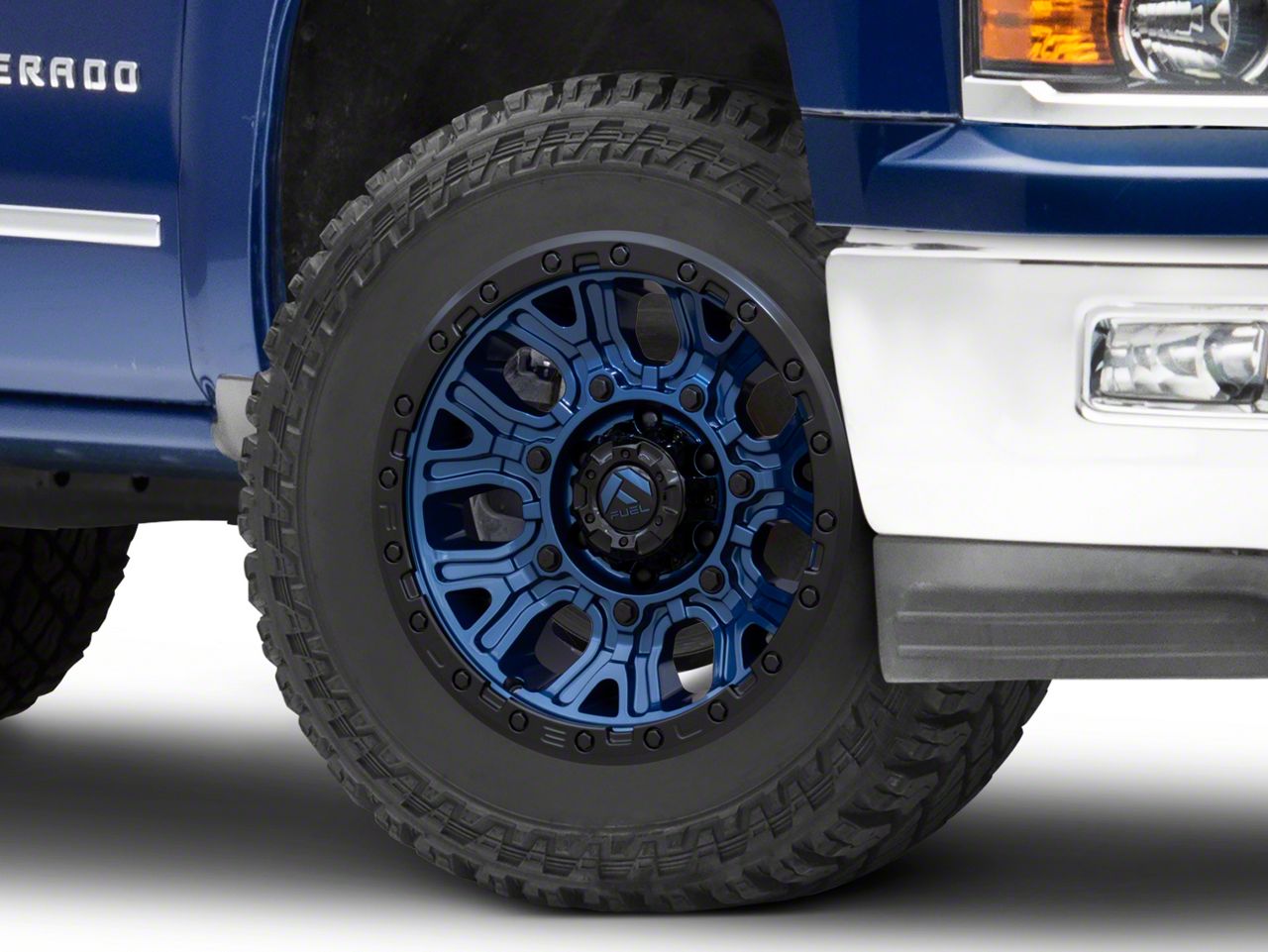 Application. This Fuel Wheels Traction Dark Blue with Black Ring 6-Lug Wheel; 20x10; -18mm Offset, with a backspace of 4.791 Inch, 121.7mm and bolt pattern of 6 x 139.7mm (6 x 5.5-Inch), is designed to enhance alignment and driving stability, ensuring a perfect fit with the vehicle model. Specifically designed to fit 2014-2018 Silverado 1500 models, this wheel's specifications contribute to a seamless alignment and stable driving experience by ensuring the wheel fits perfectly within the vehicle's wheel well, reducing the risk of rubbing issues and optimizing handling characteristics. Sold individually.