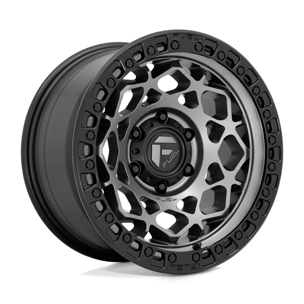 Fuel Wheels Unit Gunmetal with Matte Black Ring 6-Lug Wheel; 17x9; -12mm Offset exudes a captivating aesthetic appeal that seamlessly complements various vehicle styles. The craftsmanship of Fuel Wheels ensures a robust and premium feel, making it a standout choice for discerning drivers.