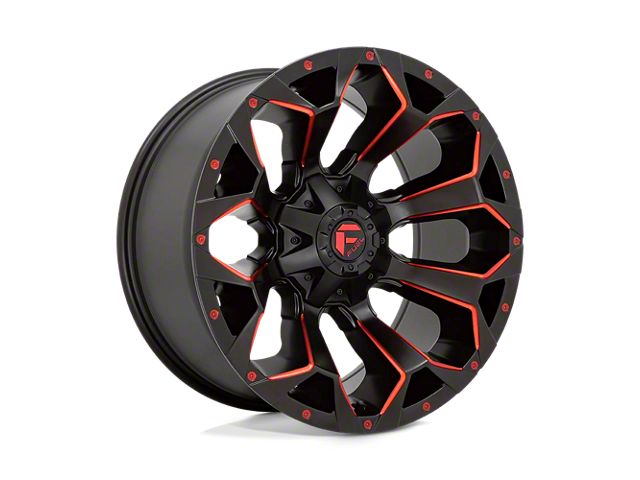 Fuel Wheels Assault Matte Black Red Milled 6-Lug Wheel; 20x12; -43mm Offset The Fuel Wheels Assault Matte Black Red Milled 6-Lug Wheel combines a sleek, sophisticated design with premium construction that enhances the visual appeal and complements a wide range of vehicle styles. This wheel is perfect for those seeking to make a bold statement while maintaining elegance and robustness.