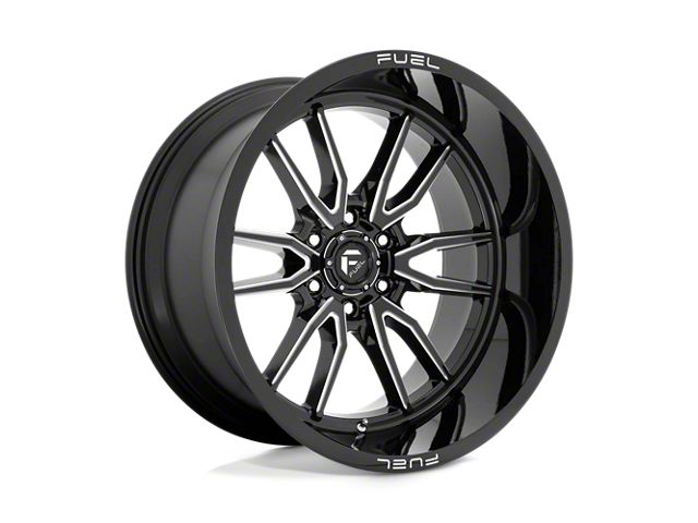 Fuel Wheels Clash Gloss Black Milled 6-Lug Wheel; 22x12; -44mm Offset The Fuel Wheels Clash Gloss Black Milled 6-Lug Wheel combines a sleek, sophisticated design with premium construction that enhances the visual appeal and complements a wide range of vehicle styles. This wheel is perfect for those seeking to make a bold statement while maintaining elegance and robustness.