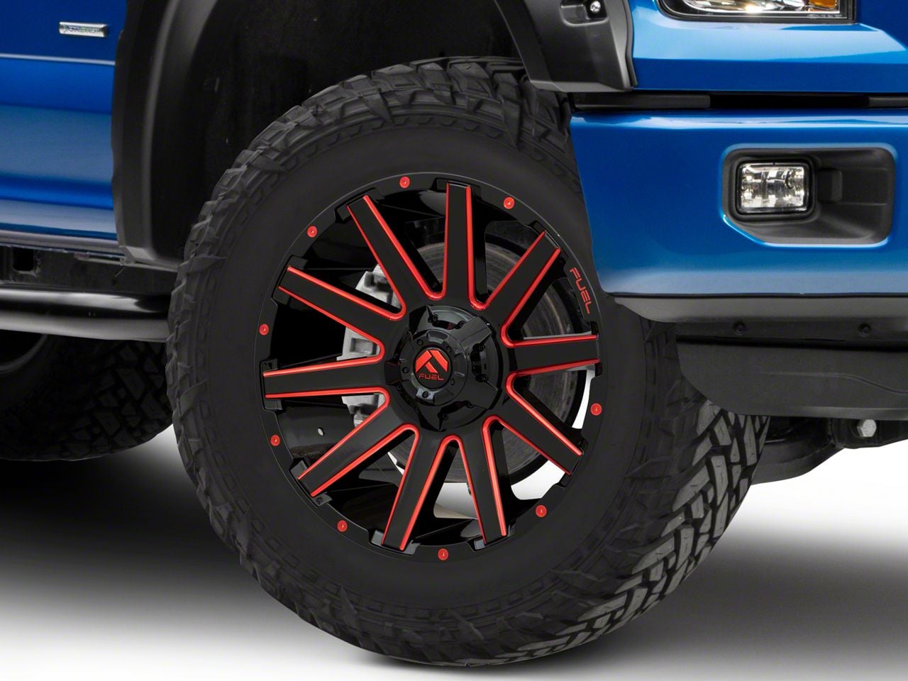 Application. This Fuel Wheels Contra Gloss Black with Red Tinted Clear 6-Lug Wheel; 20x9; 20mm Offset with a backspace of 5.788 Inch, 147.1mm; and bolt pattern of 6 x 135mm (6 x 5.31-Inch), contributes to alignment, driving stability, and ensures a perfect fit with the vehicle model. Designed to fit the 2015-2020 F-150. Sold individually.
