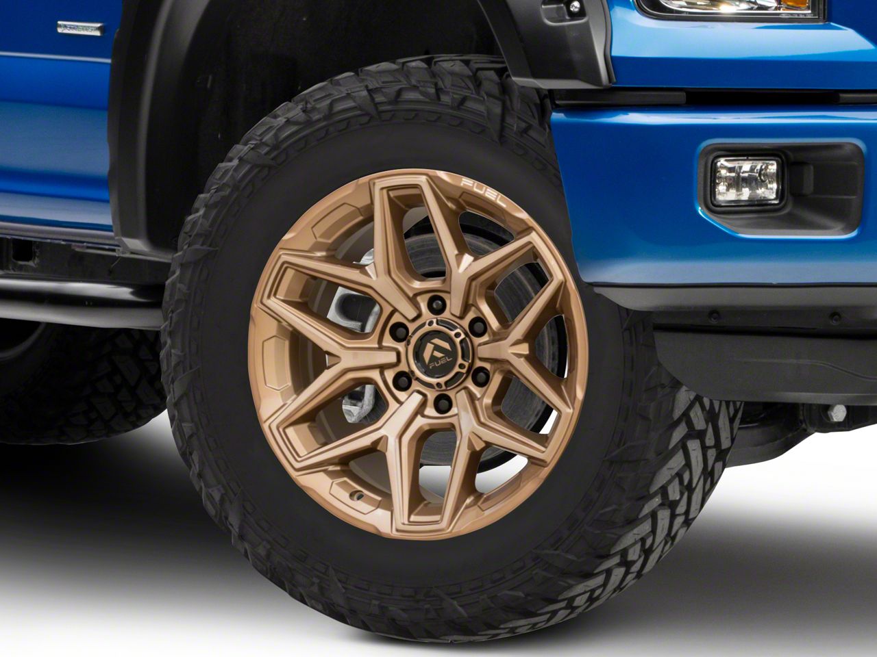 Application. This Fuel Wheels Flux Platinum Bronze 6-Lug Wheel; 20x9; 1mm Offset with a backspace of 5.039 Inch, 128mm; and bolt pattern of 6 x 135mm (6 x 5.31-Inch) contributes to impeccable alignment and driving stability. Designed to fit 2015-2020 F-150 models, sold individually.