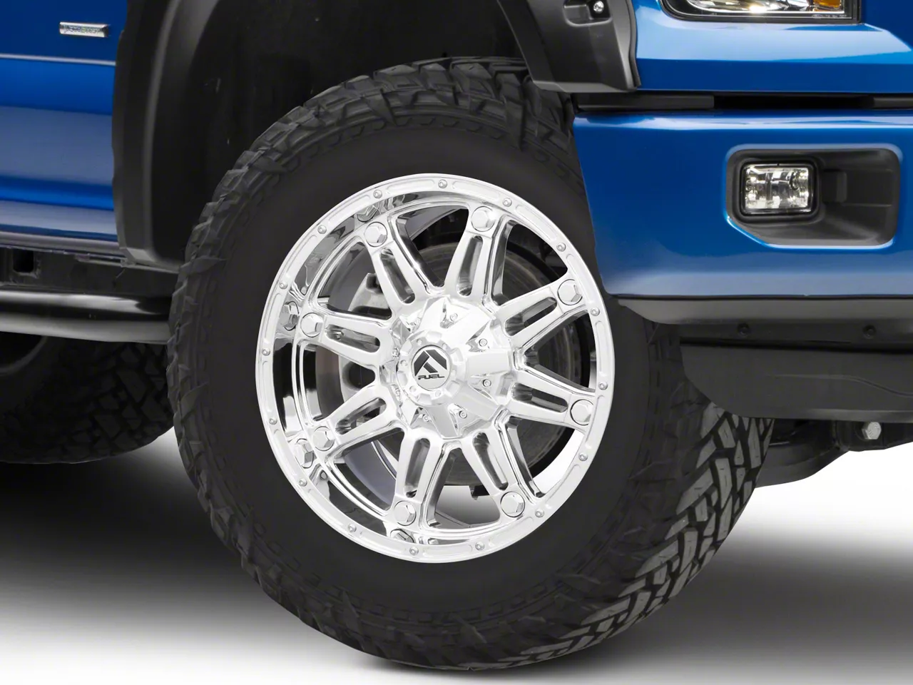 Application. This Fuel Wheels Hostage Chrome 6-Lug Wheel; 20x9; 20mm Offset, with a backspace of 5.787 Inch, 147mm and bolt pattern of 6 x 135mm (6 x 5.31-Inch), is designed to provide not only a striking visual appeal but also to contribute significantly to the alignment and driving stability of the vehicle. Its specifications ensure a precise fit with the vehicle model, enhancing the overall driving experience. Built to fit the 2015-2020 F-150, this wheel is sold individually.